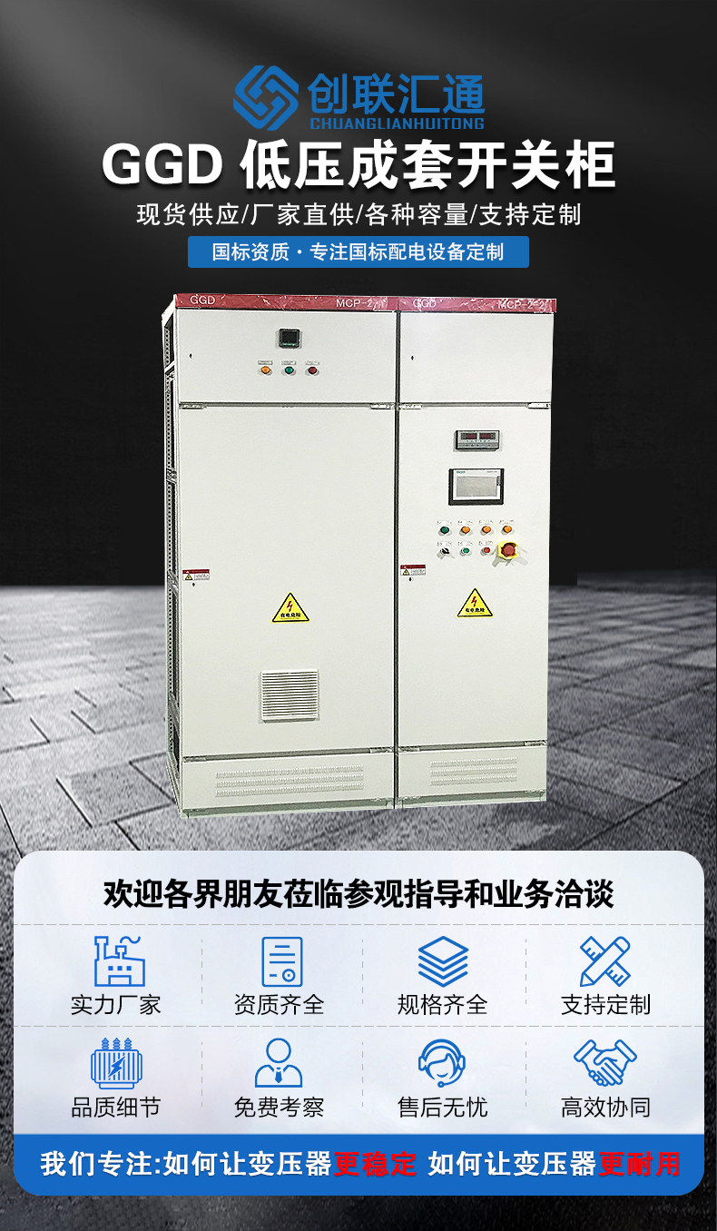 GGD型交流低壓配電柜適用于交流50Hz,額定工作電壓380V,額電工作電流至3150A的配電系統(tǒng),可用于發(fā)電廠、變電站、工礦企業(yè)等電力用戶作為動(dòng)力、照明及配電設(shè)備的電能轉(zhuǎn)換、分配與控制之用。