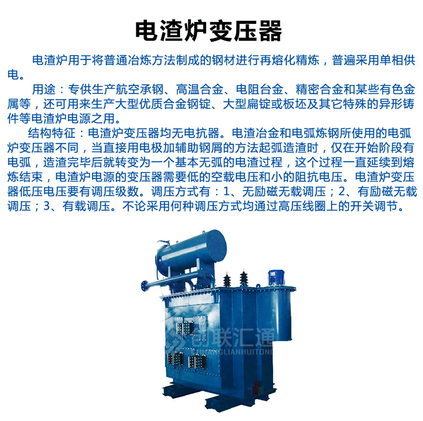 電渣爐變壓器電渣爐變壓器均無電抗器,專供生產(chǎn)航空承鋼、高溫合金、電阻臺(tái)金、精密合金和某些有色金屬等,還可用來生產(chǎn)大型優(yōu)質(zhì)合金鋼錠、大型扁錠或板坯及其它特殊的異形鑄件等電渣爐電源之用。
